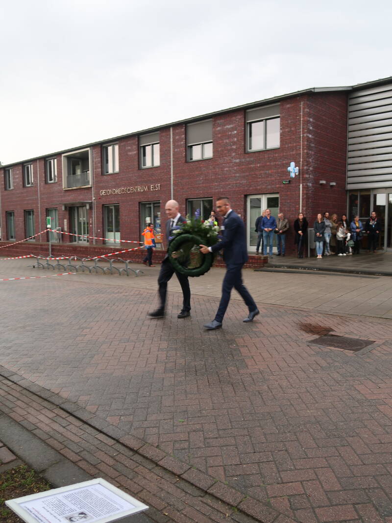 Afterwards the first wreath was laid by alderman Gert van Laar and the chairman of the Stichting 4 en 5 mei Elst UT, Dick van Laar...